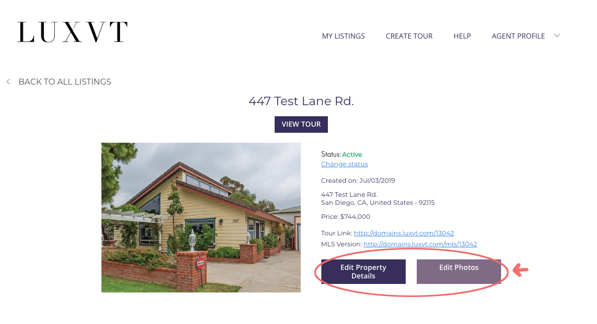 On the next screen, you select “edit property details” to edit any information about the tour, and “edit photos” to change the photos.